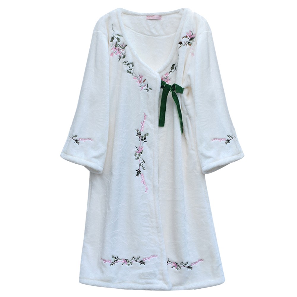 1PC Cardigan Lace-up Bathrobe Fashionable Embroidered Bathrobe Loose Home