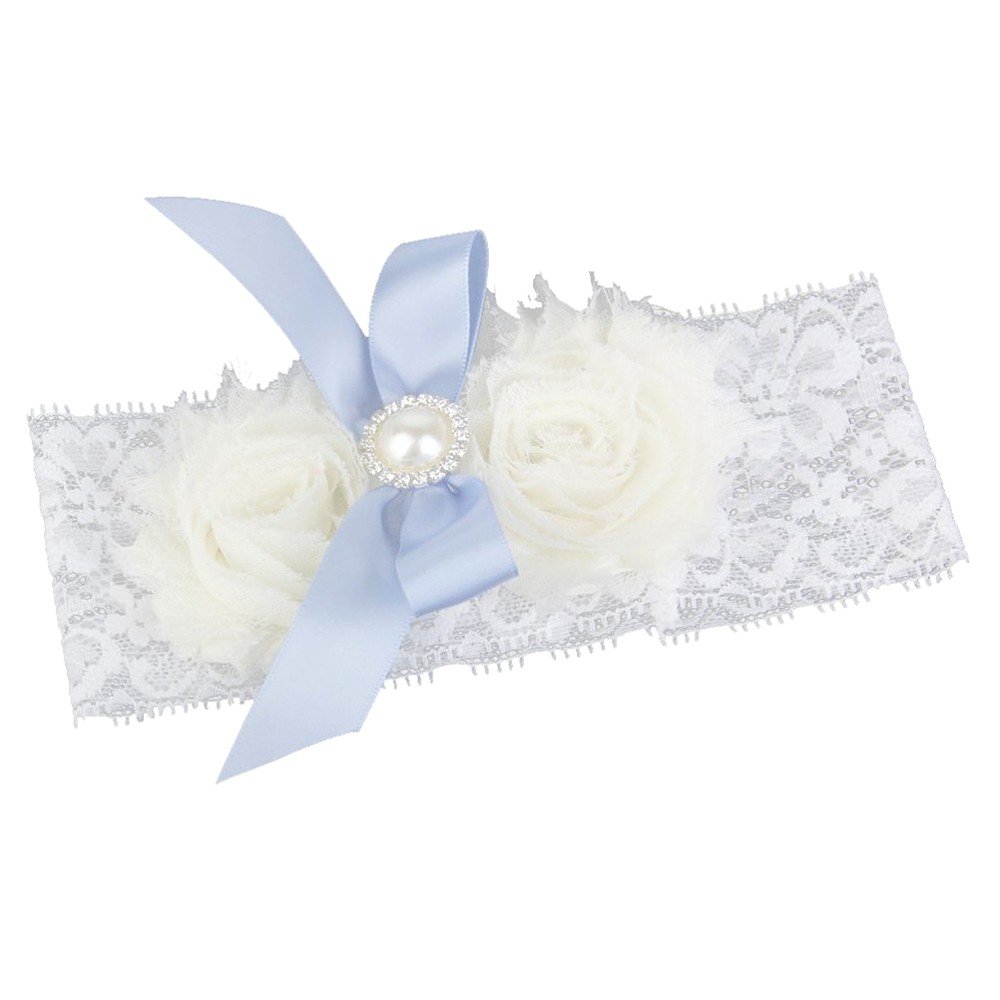 Bridal Bowknot Rhinestone Pearl Decorated Lace Garter for Prom Wedding (White)