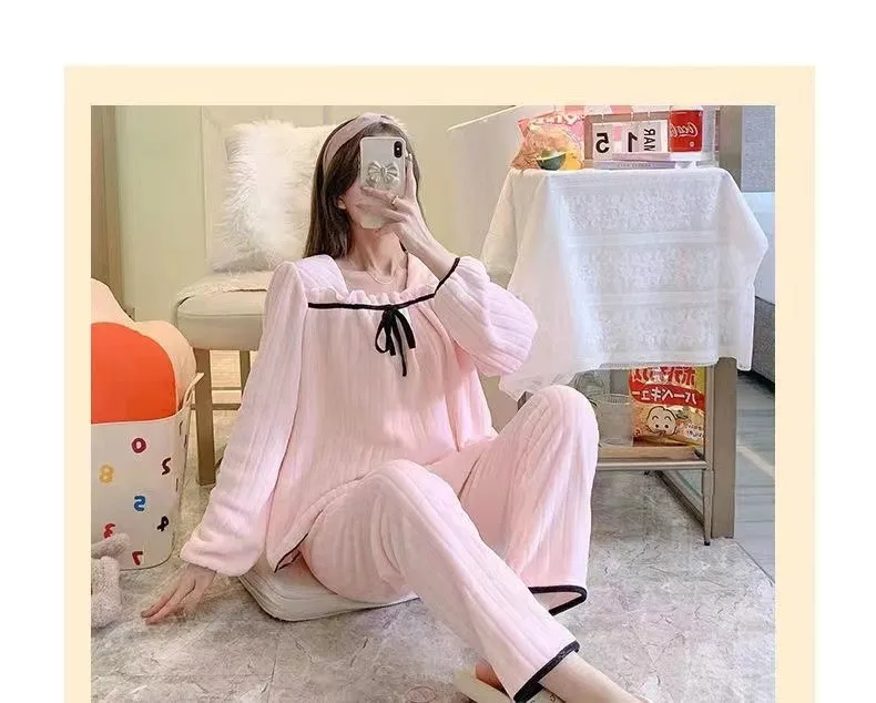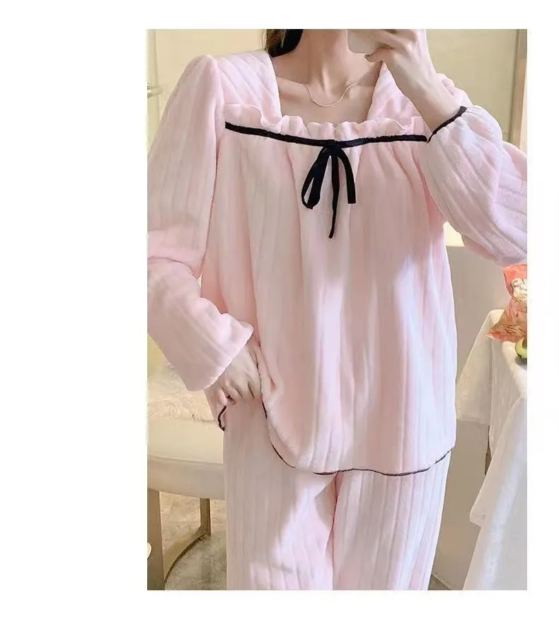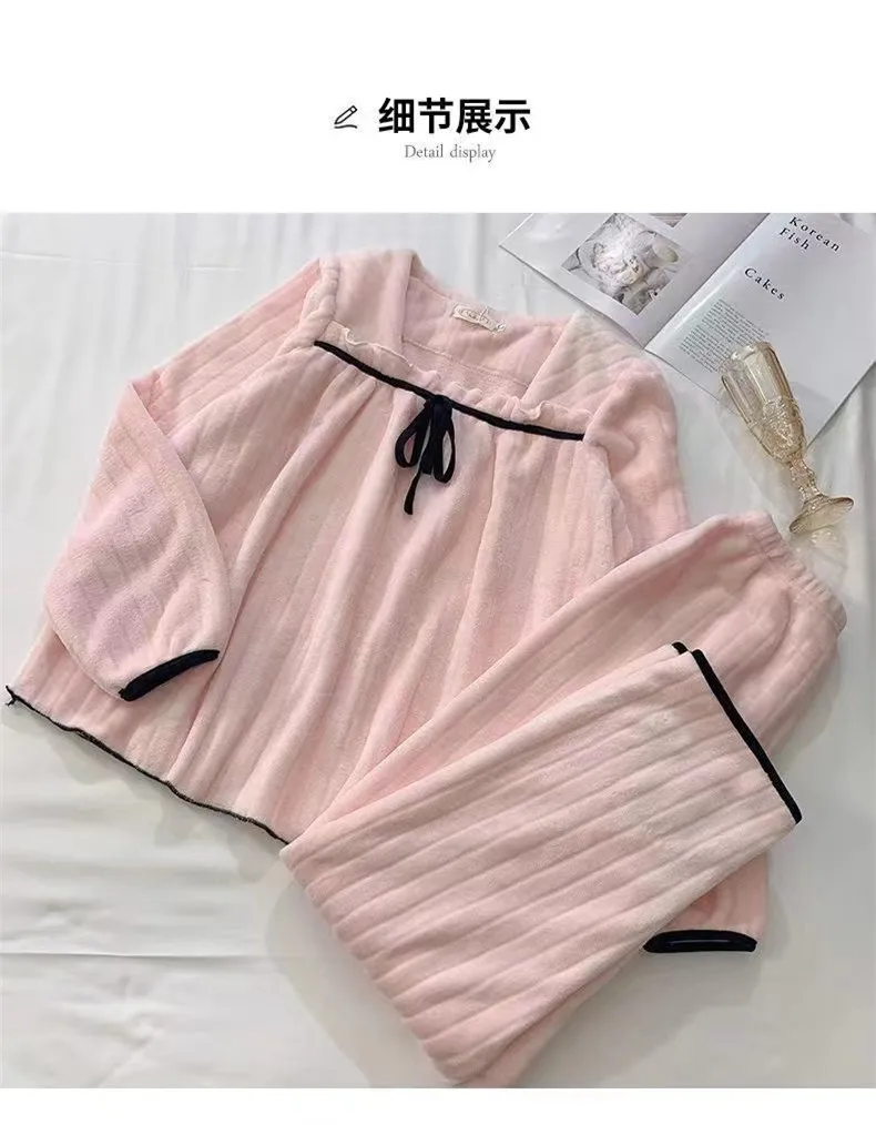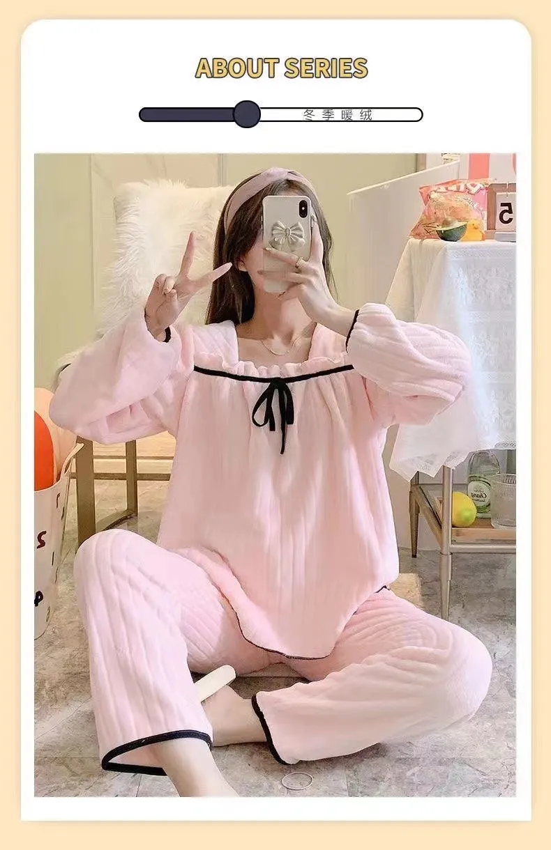 2022 women's autumn and winter pajamas set thick cute pajamas flannel pajamas