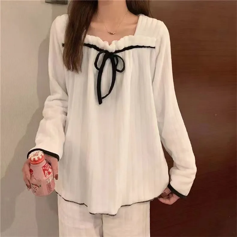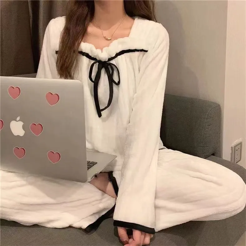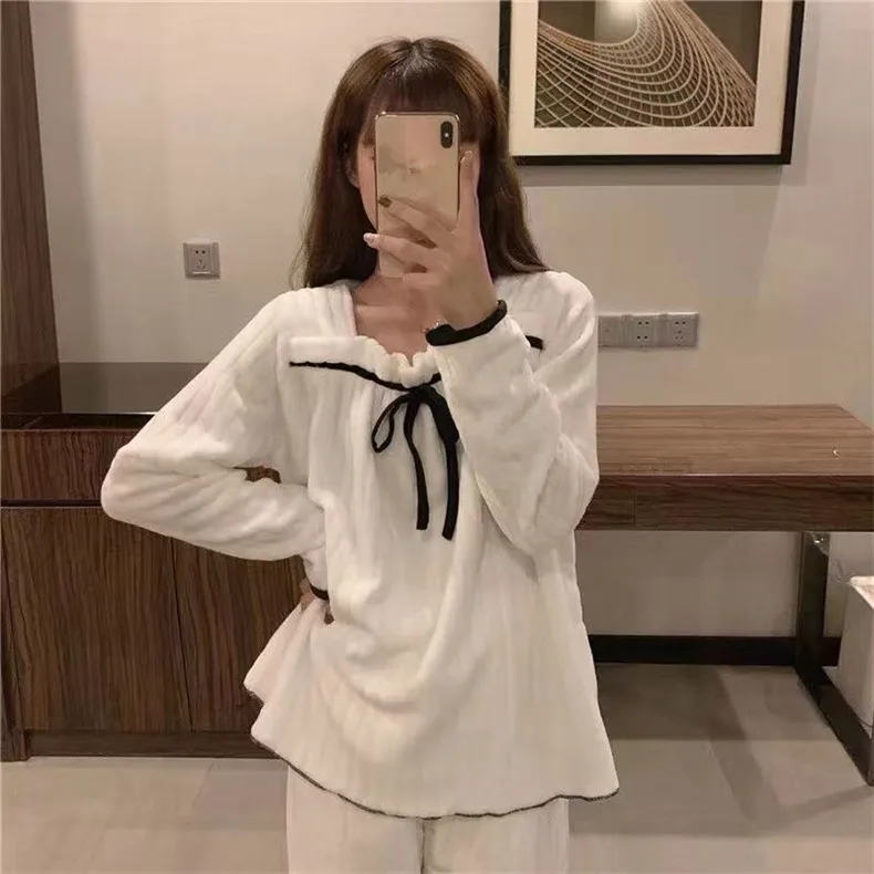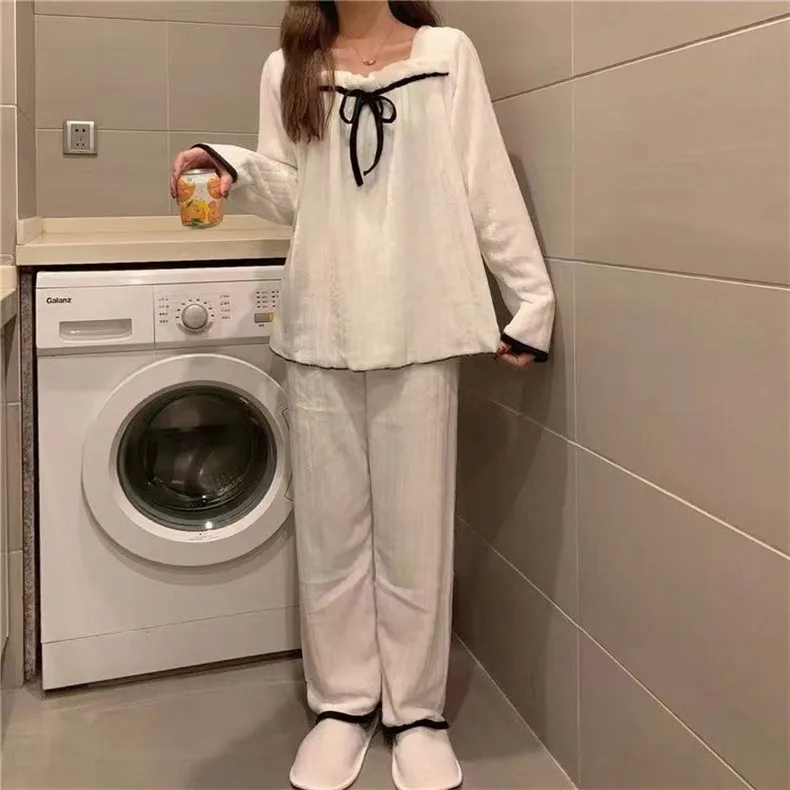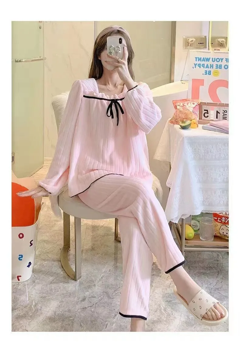 2022 women's autumn and winter pajamas set thick cute pajamas flannel pajamas
