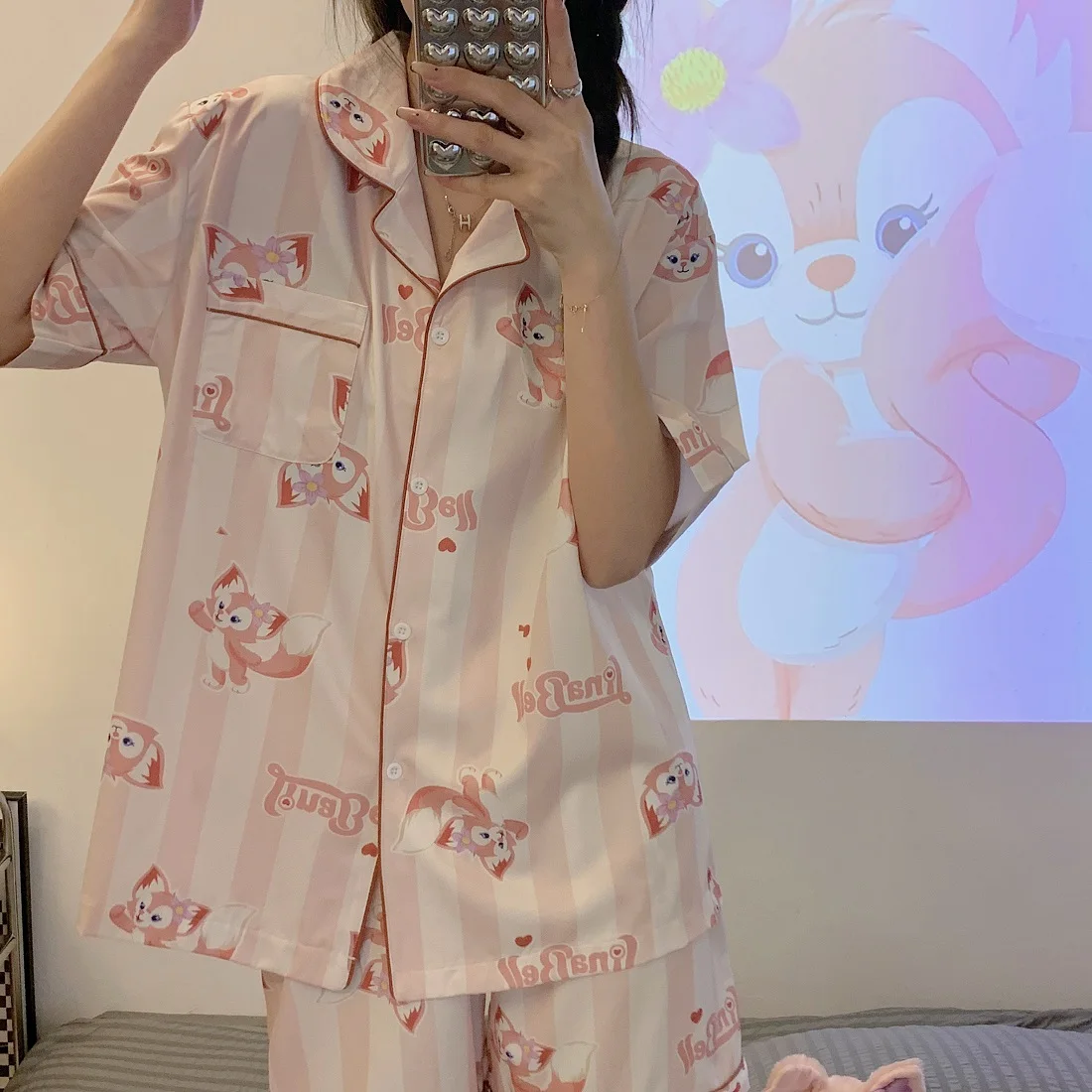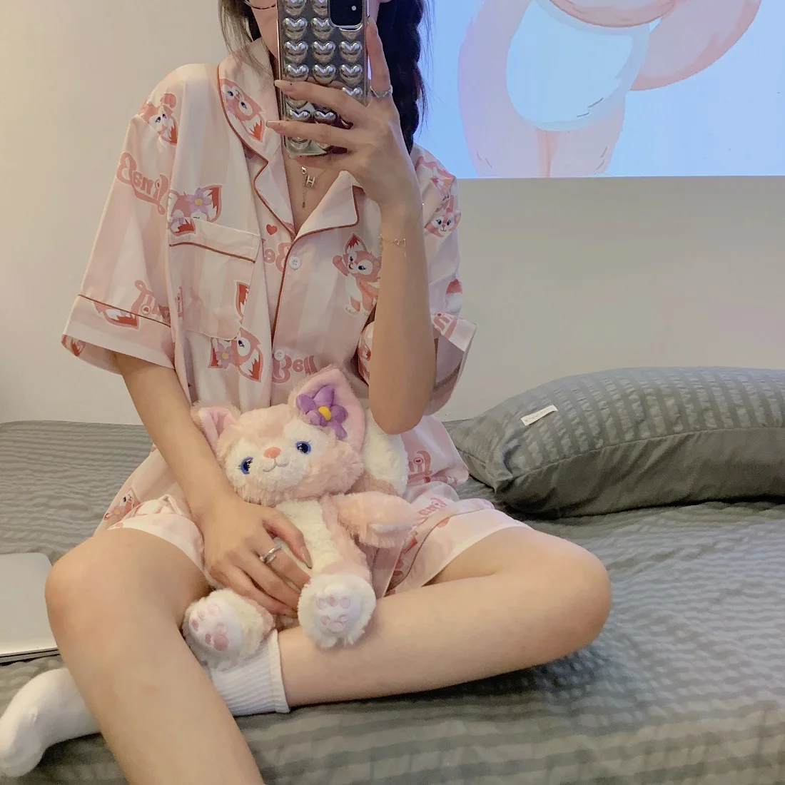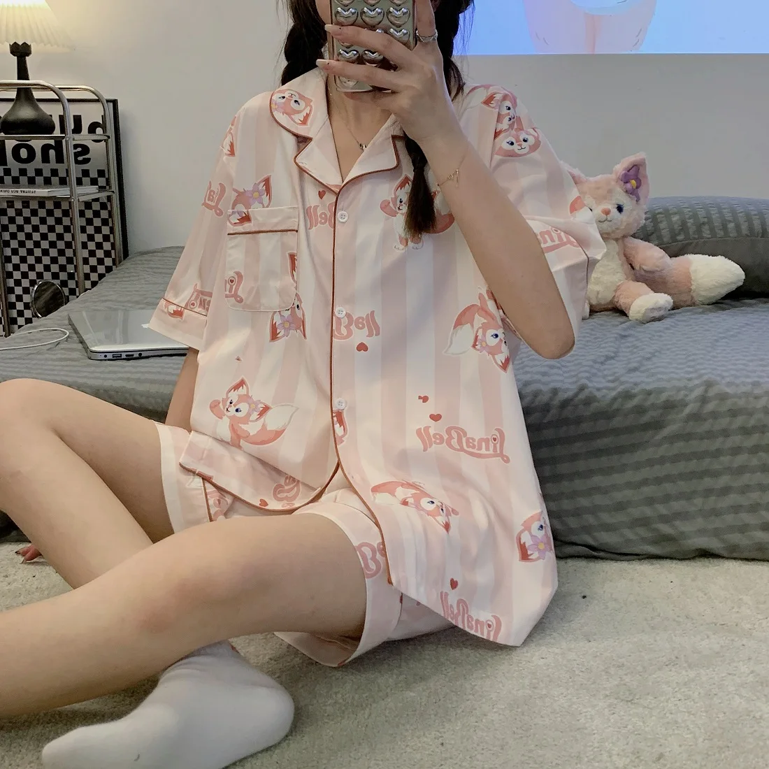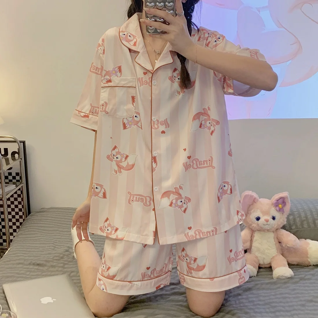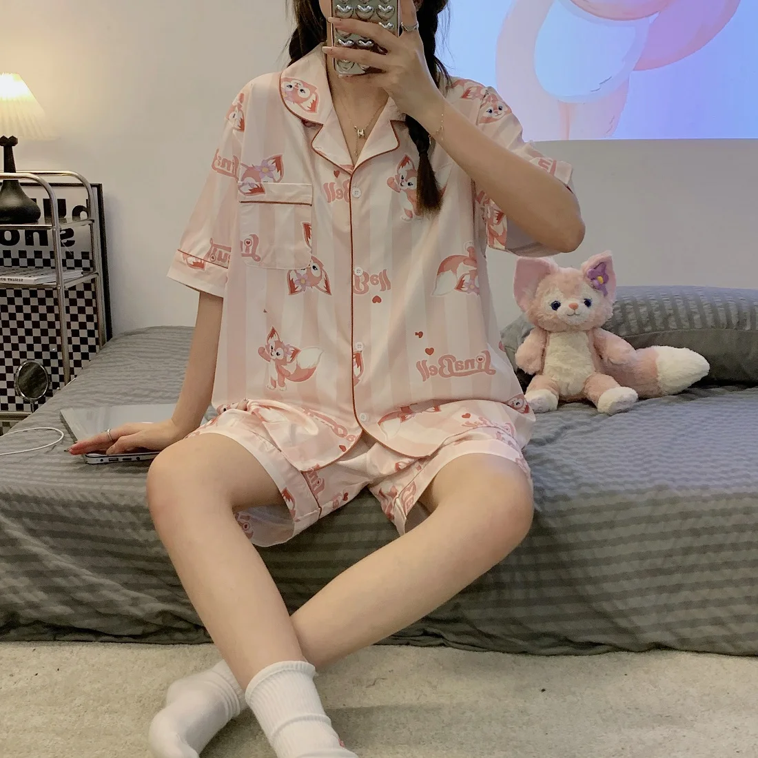 LinaBell Stain Pajamas Set Short Sleeve Top Shorts Pajamas Sleepwear unisex