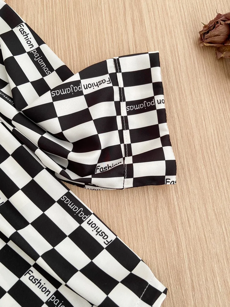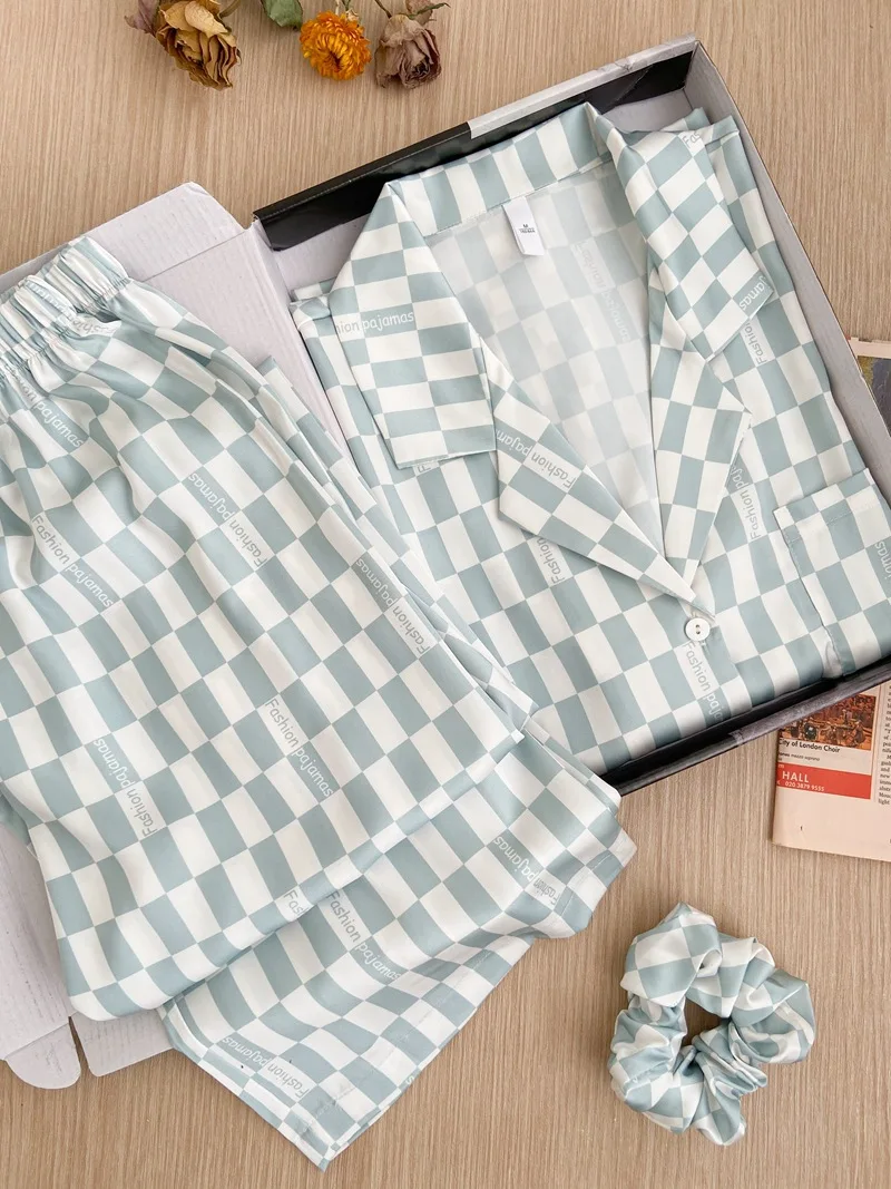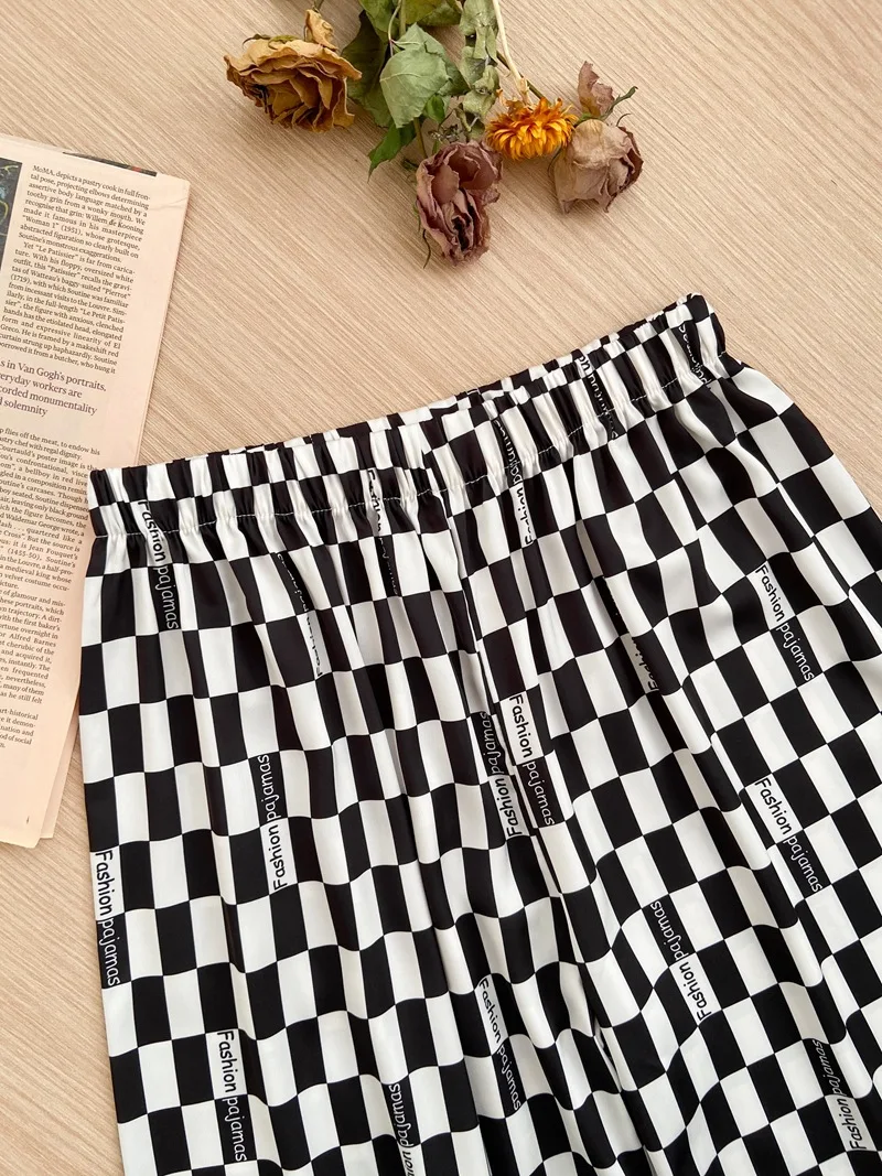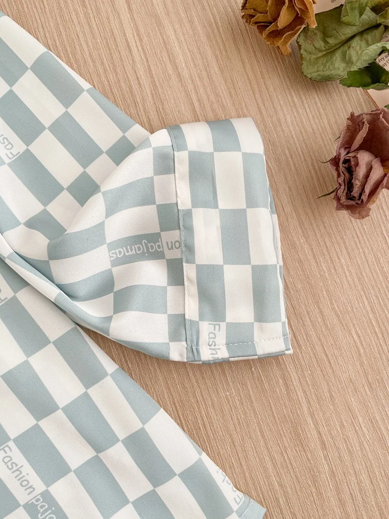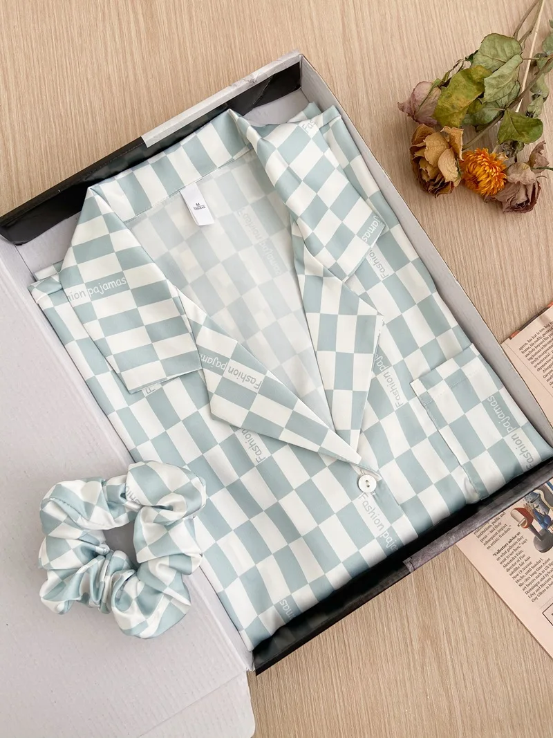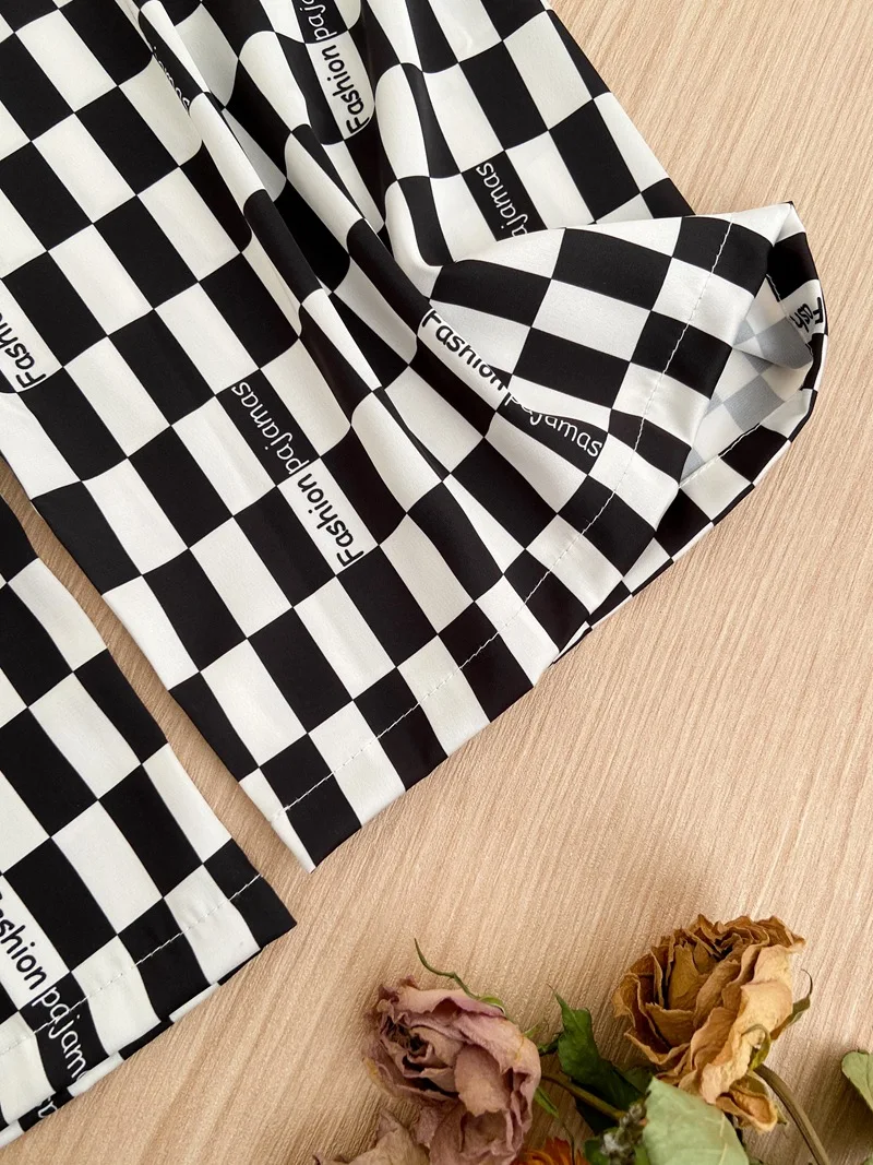 Sleepwear Two-Piece Set Elegant Print Plaid LongSleeve PijamasSuit Spring Summer