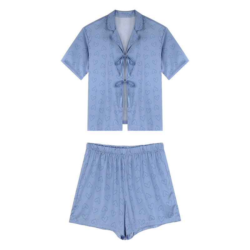 Available in solid color, cute hearts or plaid prints. Set include short sleeve lace-up bowknot shirt and shorts.